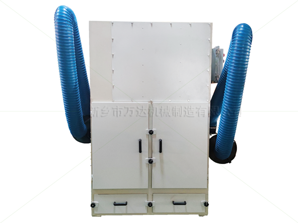 含塵氣體進(jìn)入除塵器,灰斗后,由于氣流截面的突然擴(kuò)大和氣流分布板的作用,氣流中的一些粗顆粒在動(dòng)力和慣性力的作用作用下沉降在灰斗中。粒度細(xì)、密度低的粉塵顆粒進(jìn)入粉塵過濾室后,通過布朗擴(kuò)散和篩分的共同作用,粉塵沉積在濾料表面,凈化后的氣體進(jìn)入潔凈空氣室,通過風(fēng)機(jī)從排氣管排出。