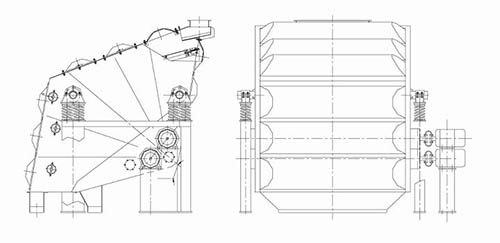 整體結(jié)構(gòu)主要由這幾部分組成:帶分流裝置的進(jìn)料口、支架、帶快速插銷的檢修上蓋、振動(dòng)彈簧,振動(dòng)電機(jī)、篩體等配件組成。振動(dòng)彈簧連接在振動(dòng)支架上,支撐著篩體,振動(dòng)電機(jī)與篩體的安裝橋架進(jìn)行布局安裝。帶快速插銷的檢修上蓋位于篩體上側(cè),方便快捷打開上蓋查看篩網(wǎng)的使用情況。概率篩是根據(jù)雙振動(dòng)電機(jī)自同步直線振動(dòng)原理制成。在振動(dòng)過程中由電機(jī)產(chǎn)生的縱向激振力(由于兩電機(jī)反向同步轉(zhuǎn)動(dòng)橫向力抵消)使篩體沿水平面成一傾斜角度的方向作直線振動(dòng),從而使物料在篩網(wǎng)上向前不斷地拋物狀運(yùn)動(dòng),達(dá)到篩分目的。各層篩網(wǎng)沿箱體傾斜不同的角度并且相互間隔一定距離進(jìn)行布置。大傾角布置的篩網(wǎng)使得篩網(wǎng)在過載的情況下也不至于被撕裂。